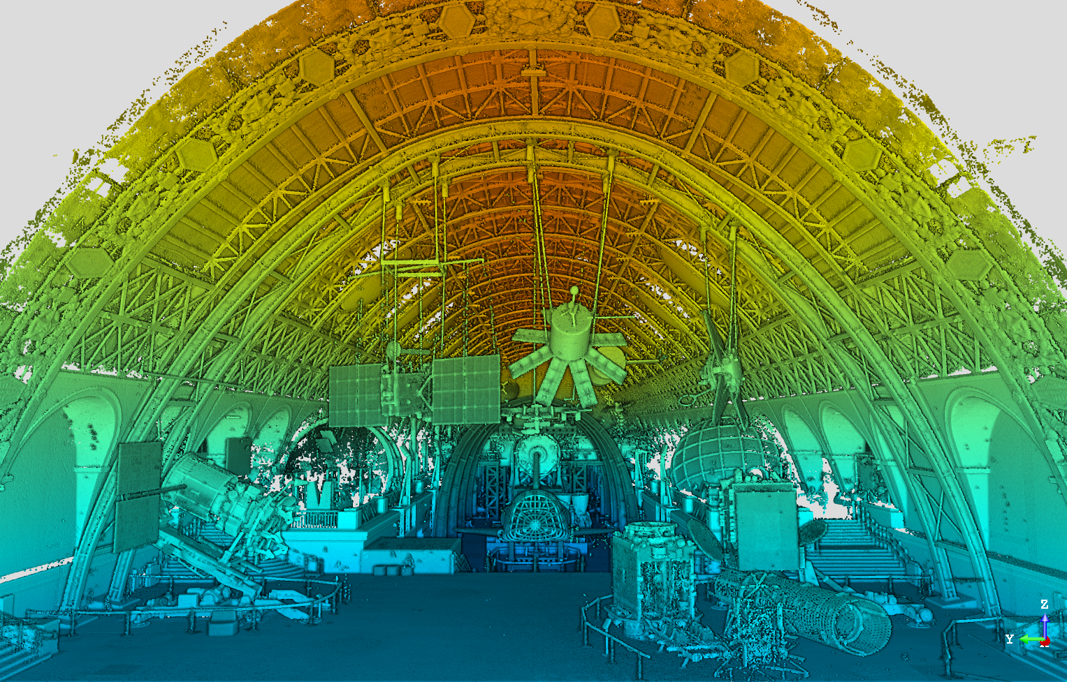 Осенью 2025 года выполнили сканирование центра авиации и космонавтики на ВДНХ. Сканирование выполнено в рамках технического обследования конструкций для компании Urban Expert